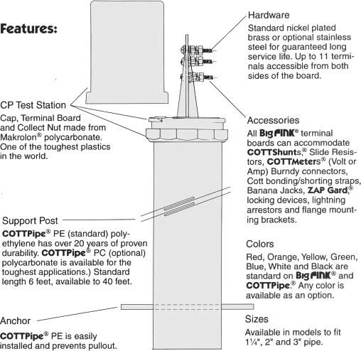 The Big Fink® cathodic protection test station is a field proven, high strength, maintenance free terminal for monitoring electric currents and potentials. Since 1976 the Big Fink® CP test station has been utilized worldwide by gas, oil, chemical and water pipeline companies. The Big Fink® CP Test Station is In stock and ready for immediate delivery from Northtown Company.