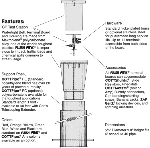 The Flush Fink® cathodic protection test station and terminal enclosure is a high strength, maintenance free, non-conductive, flush mounted below ground terminal. It's patented "Bell Jar" design keeps test leads dry even when the enclosure is covered by flood water. Field proven since 1978, Flush Fink® is in stock and ready for immediate delivery from Northtown Company.